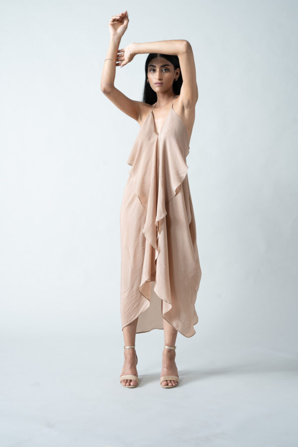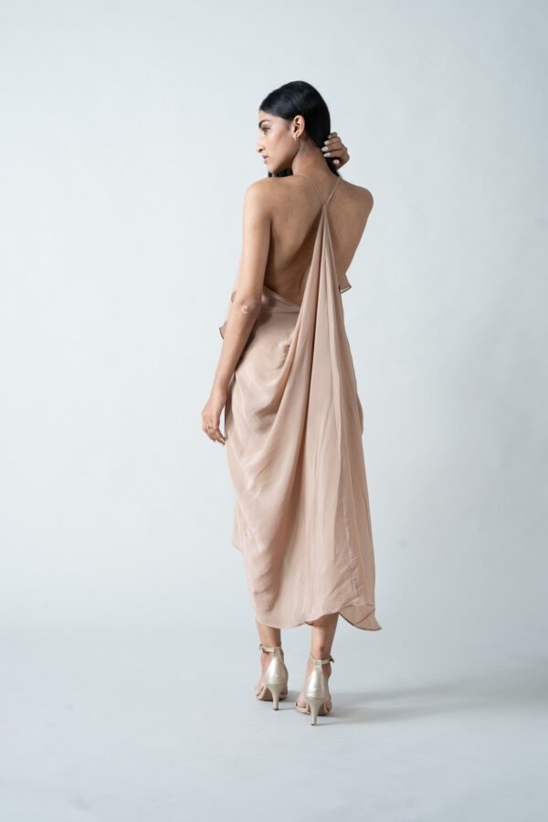 Beige High-Low Crepe Drape Dress