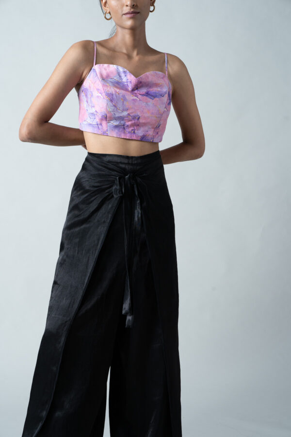 Versatile and elegant Black Gaji Silk Wrap-Around Pants designed to blend traditional charm with modern ease.