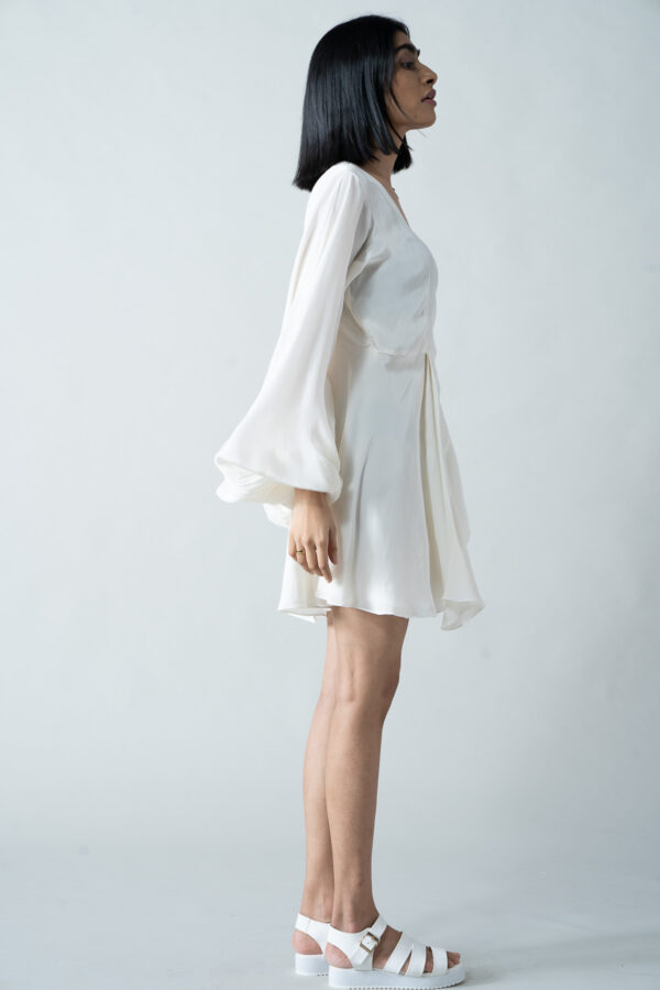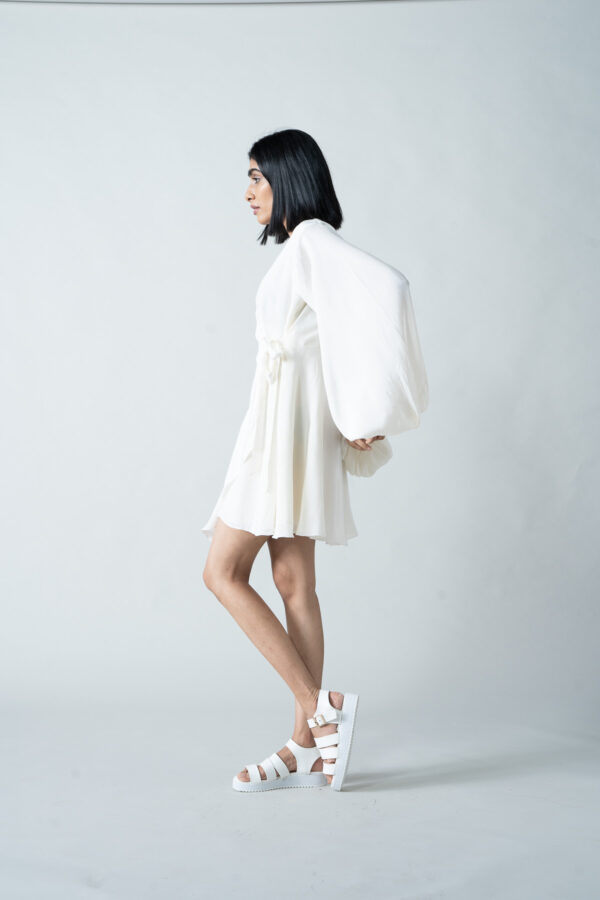 White Wrap-Around Dress with Vintage Voluminous Sleeves